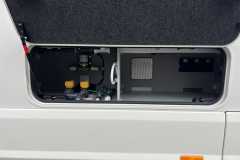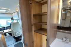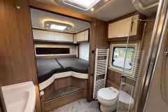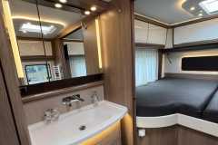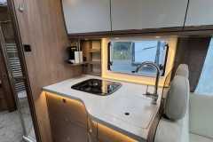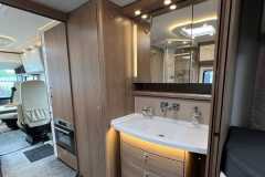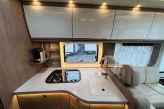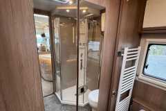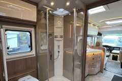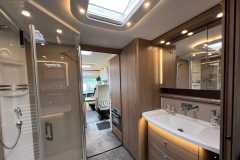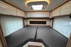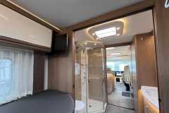 Kamper oferuje przestronne wnętrze w układzie z centralnym łóżkiem i pełnowymiarową łazienką z oddzielnym prysznicem. Izolacja termiczna i zastosowane rozwiązania techniczne umożliwiają komfortowe użytkowanie pojazdu w każdych warunkach klimatycznych.