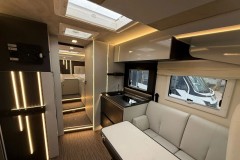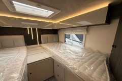 Plisowana roleta kabiny,Truma ogrzewanie Combi 6 D+E,Panel sterowanie CP+,Reduktor gazu,Podwójny system zarządzania akumulatorami,Zbiornik na wodę o pojemności 120 litrów,Zbiornik na wodę szarą o pojemności 110 litrów,Pakiet zimowy (podgrzewany zbiornik),Drzwi mieszkalne XL „PREMIUM” z 2 punktami ryglowania i centralnym zamkiem,Czujnik sygnału otwartych drzwi,Moskitiera w drzwiach,Schowki w podłodze,Materace z pianki Memory Foam (tylne łózko),Uchwyt TV z wysuwanym ramieniem,Lodówka absorpcyjna 145L,Kuchenka dwupalnikowa,Wzmocniona płyta prysznicowa ABS,Tapicerowany sufit,Blat stołu obracany 360°,lampa zewnętrzna LED „XL”,Oświetlenie garażowe „XL”,Gniazdo garażowe 220V,Kratki odprowadzające wodę w garażu.