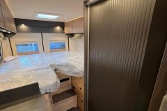 Cyfrowy licznik Digital z opcją wyświetlania mapy nawigacjiElektryczny hamulec postojowyInstalacja radiowa z anteną dachową i DAB+, 4 głośnikiOkno PREMIUM w łaziencePokrycie dachu z warstwą mikrofibryFotel pasażera z regulacją wysokościRozpoznawanie znaków drogowychSystem bezkluczykowy (Keyless Start) ze start/stop przyciskiemSystem zasłon plisowanych Remis w kabinie kierowcy (na przednią szybę i boczne okna)Elektrycznie składane lusterka zewnętrzneInteligentny asystent ograniczenia prędkościPakiet dodatkowych gniazd: 3x USB + 2x 230VSystem monitorowania ciśnienia w oponachMultimedialny system Fiat 10,1" z nawigacją, prowadzeniem tras dla kamperów i DAB+Wykończenie deski rozdzielczej: chromowane kratki nawiewówMoskitiery przy drzwiach przesuwnychŚwiatła przeciwmgielne z funkcją doświetlania zakrętówCyfrowy system kamery cofania z pojedynczym obiektywemAsystent świateł drogowychIndukcyjna ładowarka do smartfona w kabinie kierowcyCyfrowy panel sterowania Truma CP PlusAktywny asystent hamowania awaryjnego z wykrywaniem pieszych i rowerzystówAktywny asystent czujności kierowcyAutomatyczny tempomat (Adaptive Cruise Control)Wysokiej jakości materac z pianki zimnoformowanej w łóżku tylnymLusterka zewnętrzne elektrycznie regulowane i podgrzewaneCzarna ramka reflektorów przednichCzujnik deszczu i zmierzchuSystem parkowania z czujnikami cofania z tyłuAktywny asystent pasa ruchu z sygnałem ostrzegawczymSystem mocowań w przestrzeni bagażowejKierownica i gałka zmiany biegów obszyte ekoskórąZbiornik wody szarej izolowany i zabudowany w obudowieWzmacniacz ładowania (charge booster)Zbiornik paliwa o pojemności 90 lWielofunkcyjna kierownicaAutomatyczna klimatyzacja w kabinie kierowcyFotele tapicerowane w tej samej tkaninie co część mieszkalna, z podłokietnikamiInstalacja przygotowana do montażu haka holowniczegoSilnik 140 KM / 103 kW, Euro 6 E-bis Final, podwozie f35 light, 8-biegowa automatyczna skrzynia biegów, napęd lewostronny (LHD)System Truma Duo Control CS z czujnikiem zderzenia i automatycznym przełączaniem butli16-calowe aluminiowe felgi FiatKolor nadwozia „Iron Grey Metallic”Wnętrze w stylu „London 25”