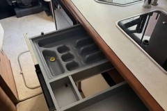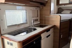 układ: 2 łóżka z tyłu, które można połączyć w jedno duże, łóżko opuszczane w kabinie. - 4 osoby do spania