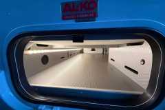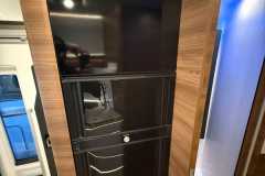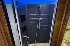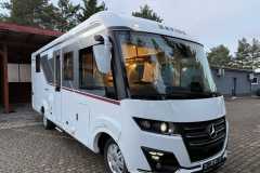 Elektrozawór do zrzutu wody szarej, prysznic zewnętrzny w garażu z mikserem wody ciepła/zimna po stronie pasażera, elektrozawór wbudowany w reduktorze GOK razem z systemem Crashsensor, świetlik Midi Heki 700x500 nad salonką, świetlik Mini Heki 400x400 nad opuszczanym łóżkiem przednim, drzwi zabudowy z wbudowanym koszem, podwójnym ryglowaniem i moskitierą, centralny zamek drzwi szoferki i zabudowy, podgrzewany zbiornik na wodę szarą, sufit tapicerowany w całości zabudowy, podgrzewany schowek na buty przy wejściu, odkurzacz stacjonarny pod lodówką, zasilany 230V, dodatkowe lampki z wbudowanymi ładowarkami USB, wbudowany okap kuchenny z oświetleniem LED, podgrzewane i elektrycznie regulowane lusterka boczne szerokokątne, podgrzewana szyba przednia, elektrycznie regulowana roleta szyby przedniej, zbiornik wyrównawczy ciśnienie przy pompce wody