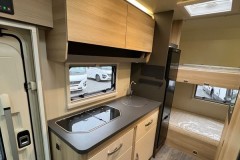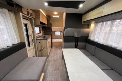 materac z wysokiej jakości tkaniny elastycznej, centralne ryglowanie do jazdy szuflad kuchennych, bateria kuchenna z mosiądzu z wkładem ceramicznym, tłoczona płyta kuchenna ze stali nierdzewnej z 2 palnikami, niezależnymi czarnymi pokrywami i zapłonem piezoelektrycznym, 128-litrowa lodówka DOMETIC z automatycznym wyborem źródła energii, podwójnie przeszklone okna w części mieszkalnej z ramą z poliuretanu oraz zestawem roleta + moskitiera, dodatkowo izolowany stopień wejściowy do kabiny szoferki, tylna ściana przygotowana do montażu pod bagażnik rowerowy, piec TRUMA COMBI 4 (ogrzewanie gazowe), regulator gazu GOK MONOCONTROL umożliwiający korzystanie z gazu podczas jazdy (system antywypadkowy), podwójne gniazda USB w części mieszkalnej i sypialnej, gniazdo 230 V w przestrzeni bagażowej, składany stół, miejsce na telewizor z okablowaniem i uchwytem, przegroda dzień / noc, meble w stylu URBAN z systemami push lock, firanki okien zabudowy, obrotowe fotele w kabinie z regulacją wysokości, manualnie opuszczane łóżko nad szoferką