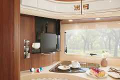 Podwozie standardowe: Mercedes-Benz AL-KO rama obniżona 415 CDISilnik bazowy: Diesel 2,0 l 170 KMDługość całkowita: 8110 mmSzerokość całkowita: 2270 mm***Wysokość całkowita: 3120 mmRozstaw osi: 3920 / 800 mmWysokość podwójnej podłogi / wysokość schowka w podwójnej podłodze: 220 / 460 mmWysokość wnętrza w części mieszkalnej: 2110 mmWysokość w garderobie / części sypialnej: 1980 mmWysokość wewnętrzna garażu tylnego: 1120 / 1240 mmSzerokość / wysokość drzwi garażu tylnego – strona pasażera: 1150 x 1080 mmSzerokość / wysokość drzwi garażu tylnego – strona kierowcy: 1150 x 1080 mmTechnicznie dopuszczalna masa całkowita (DMC): 5500kgMaksymalna masa przyczepy: 1600 kgMaksymalna liczba miejsc z 3-punktowym pasem bezpieczeństwa podczas jazdy: 4Liczba miejsc do spania: 4Rodzaj łóżek: Łóżko królewskieWymiary tylnego łóżka: 2000 x 1450 mmWymiary łóżka opuszczanego (drop-down): 1950 x 1600 mmWymiary łóżka po przekształceniu strefy siedzeń (mm)*: 1930 x 1290 / 845** mmPojemność lodówki / w tym zamrażalnika: 153 / 29 lSystem ogrzewania: AldePojemność zbiornika wody czystej: 235 lPojemność zbiornika wody szarej: 185 l