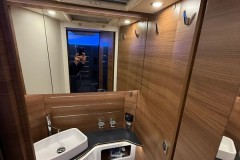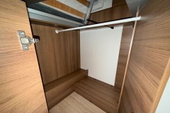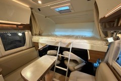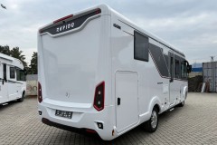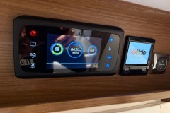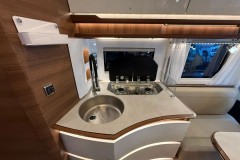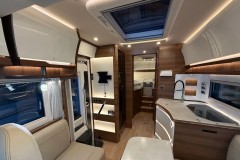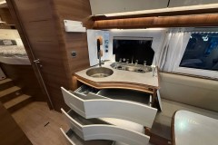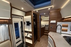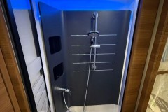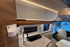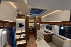 Elektrozawór do zrzutu wody szarej, prysznic zewnętrzny w garażu z mikserem wody ciepła/zimna po stronie pasażera, elektrozawór wbudowany w reduktorze GOK razem z systemem Crashsensor, świetlik Midi Heki 700x500 nad salonką, świetlik Mini Heki 400x400 nad opuszczanym łóżkiem przednim, drzwi zabudowy z wbudowanym koszem, podwójnym ryglowaniem i moskitierą, centralny zamek drzwi szoferki i zabudowy, podgrzewany zbiornik na wodę szarą, sufit tapicerowany w całości zabudowy, podgrzewany schowek na buty przy wejściu, odkurzacz stacjonarny pod lodówką, zasilany 230V, dodatkowe lampki z wbudowanymi ładowarkami USB, wbudowany okap kuchenny z oświetleniem LED, podgrzewane i elektrycznie regulowane lusterka boczne szerokokątne, podgrzewana szyba przednia, elektrycznie regulowana roleta szyby przedniej, zbiornik wyrównawczy ciśnienie przy pompce wody
